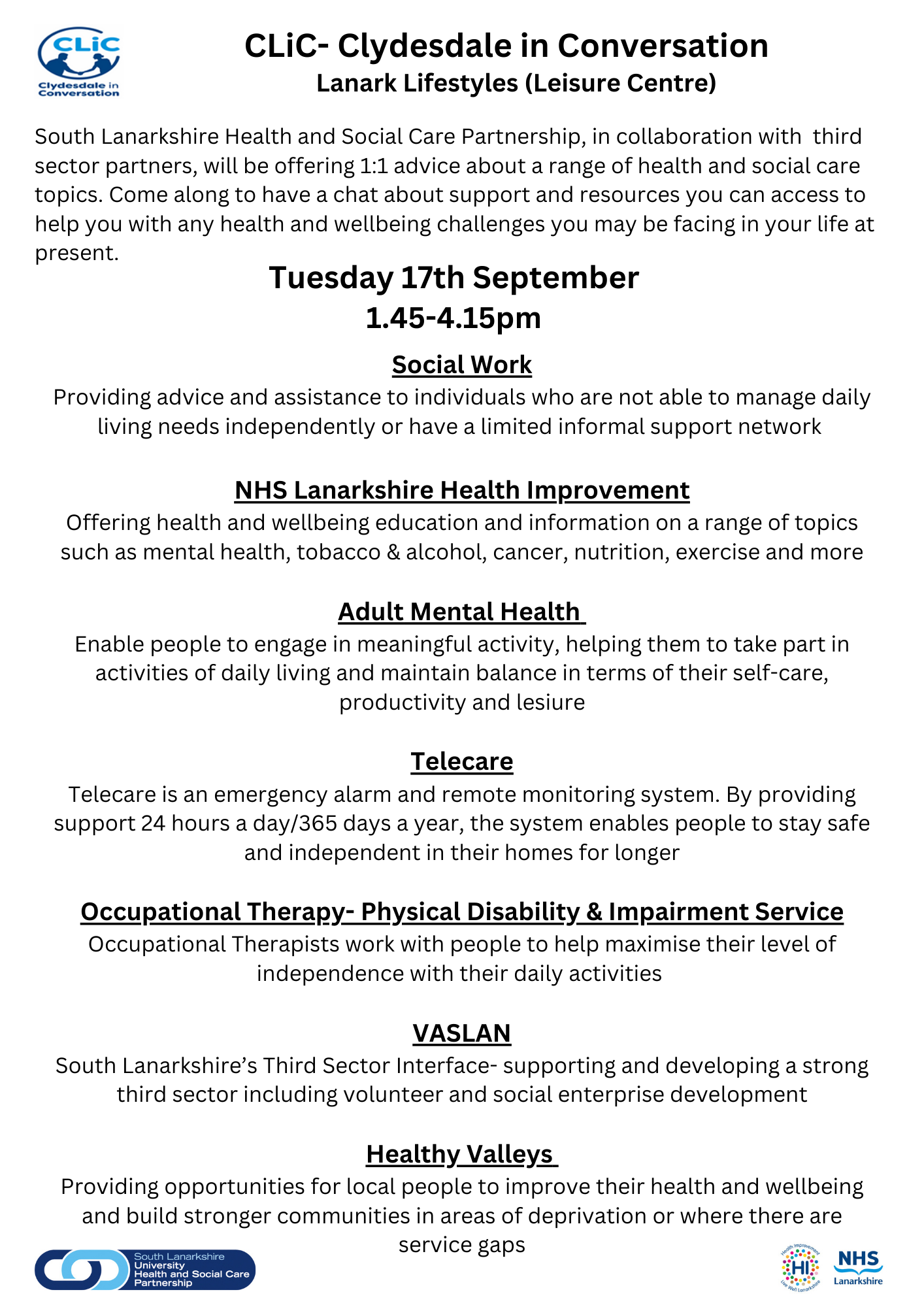 This session will be delivered by NHS South Lanarkshire in partnership with Versus Arthritis. The session will focus on Arthritis Awareness: understanding the impacts of the condition and importance of Physical Activity & Self-Management.